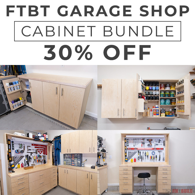Do you need to tame the clutter in your shop? Get organized and build out your space with the FTBT Garage Shop Cabinet Bundle. These are perfect for your garage workshop and you can mix and match to get the perfect setup. You'll get all 5 pieces of the Modular Garage Shop Cabinet system, sample layouts you could use and two bonus plans!