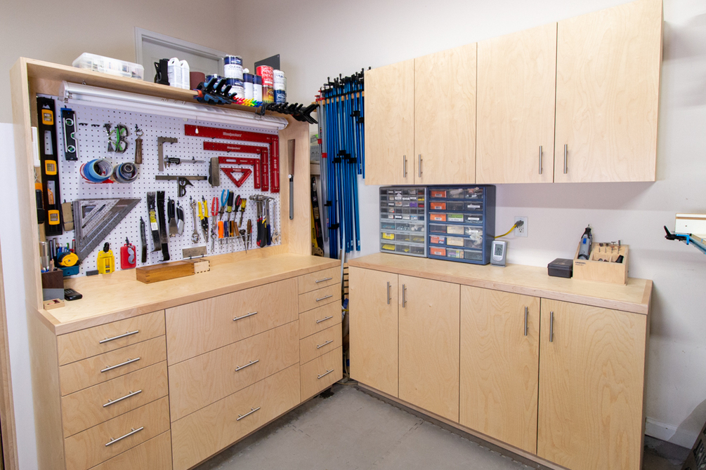 The base cabinets are 20" deep to maximize shop space while still giving good storage. Each cabinet piece is either 15, 30, or 60 inches for maximum plug-and-play flexibility. With a variety of shop cabinets to choose from, you'll be able to build all of the storage you need for your shop. Each plan has an optimized material cut list to help save you money by buying less plywood. The detailed parts lists and instructions will guide you through the build and save you time and frustration. Each build also has a blog post and most have YouTube videos as well. These are great compliments to the PDF plans to show you exactly what it looks like to build the projects.